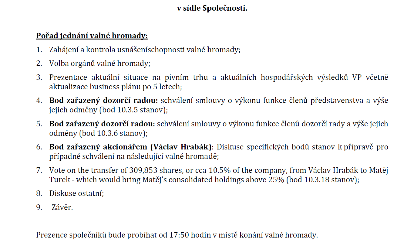 Invitation for Shareholders: Meeting on 26/05/2026 at Vinohradský pivovar